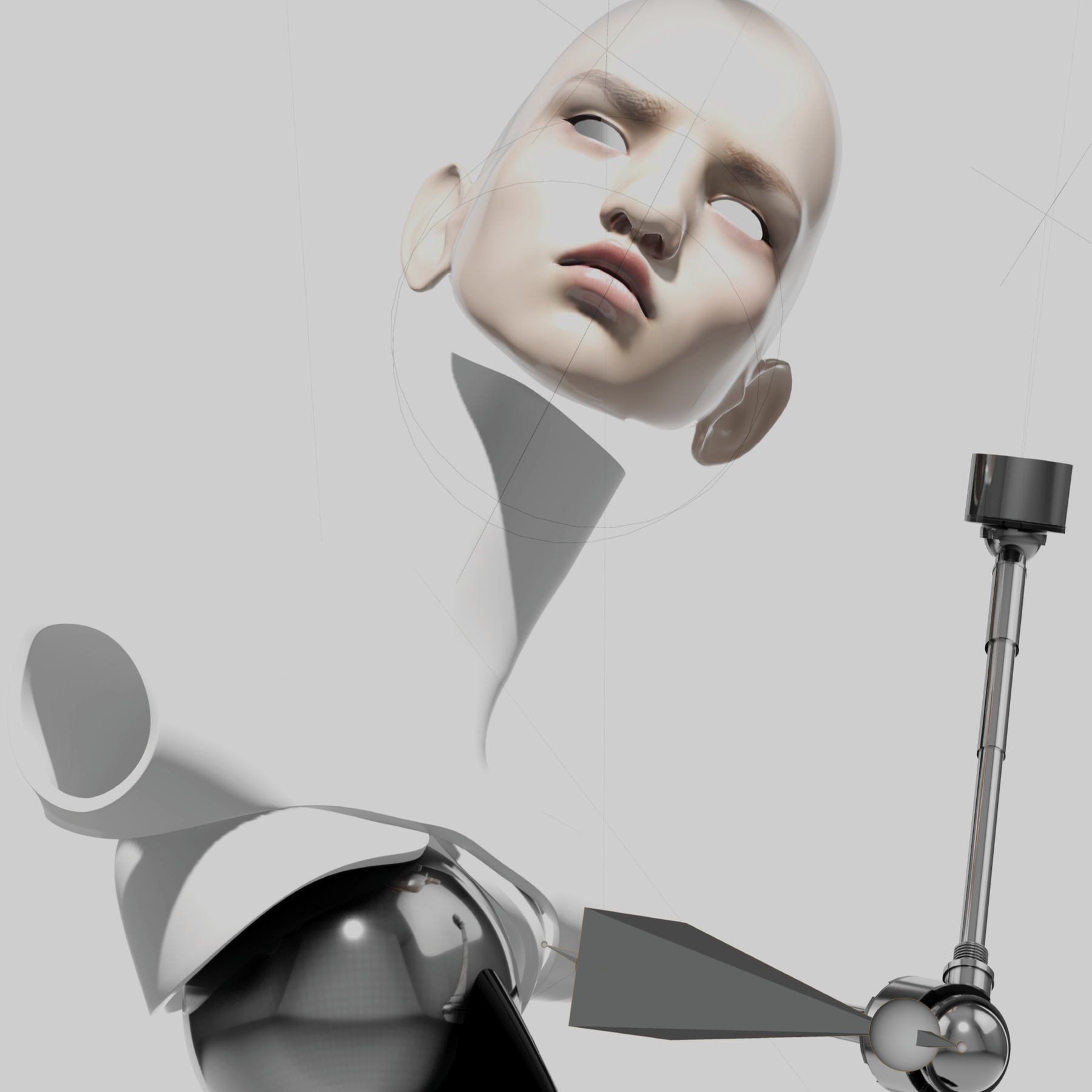 The speculative science fiction series simulates an editorial campaign surrounding a fashion animatronic named Francesca. The images are stills taken from the animatronic’s routine performance of editorial poses.