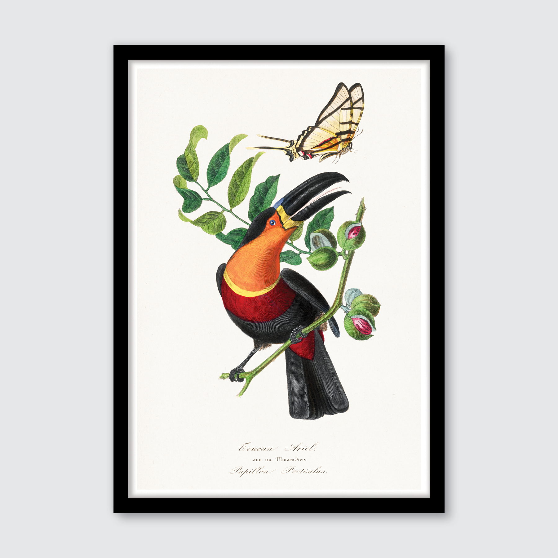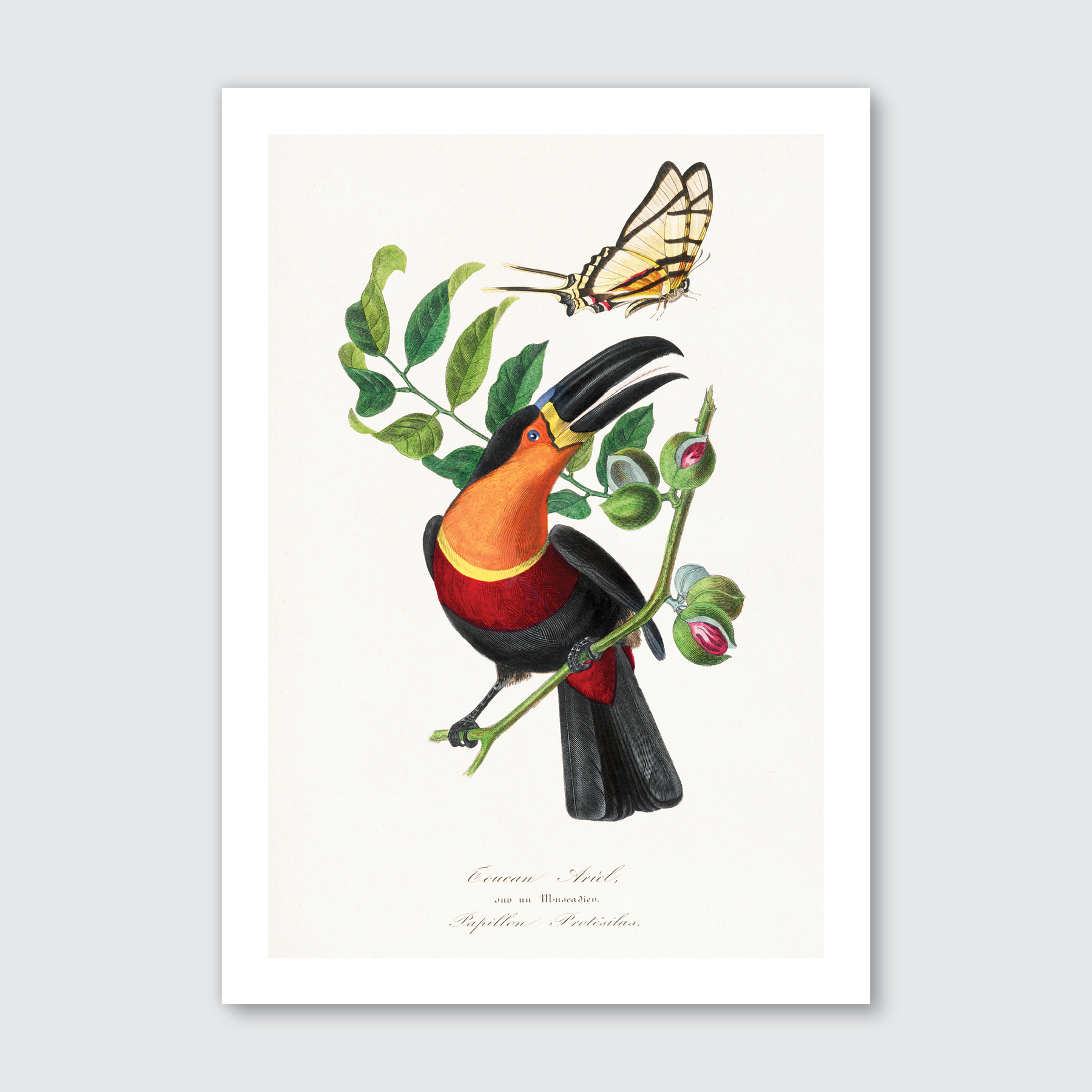 Bring the charm of 19th-century natural history into your home with this exquisite art print of Channel Billed Toucan by Paul Gervais. Originally part of his celebrated Le Jardin des Plantes collection, this piece highlights the striking beauty of the channel-billed toucan, with its vivid plumage and distinctive beak, rendered in Gervais’ signature meticulous detail and rich colours. Featured among his modest yet captivating bird, flower, and insect illustrations, this print offers a timeless blend of elegance and nature. Its classic appeal effortlessly complements any style, from modern and contemporary spaces to a revival of vintage art, making it a versatile treasure for any decor.