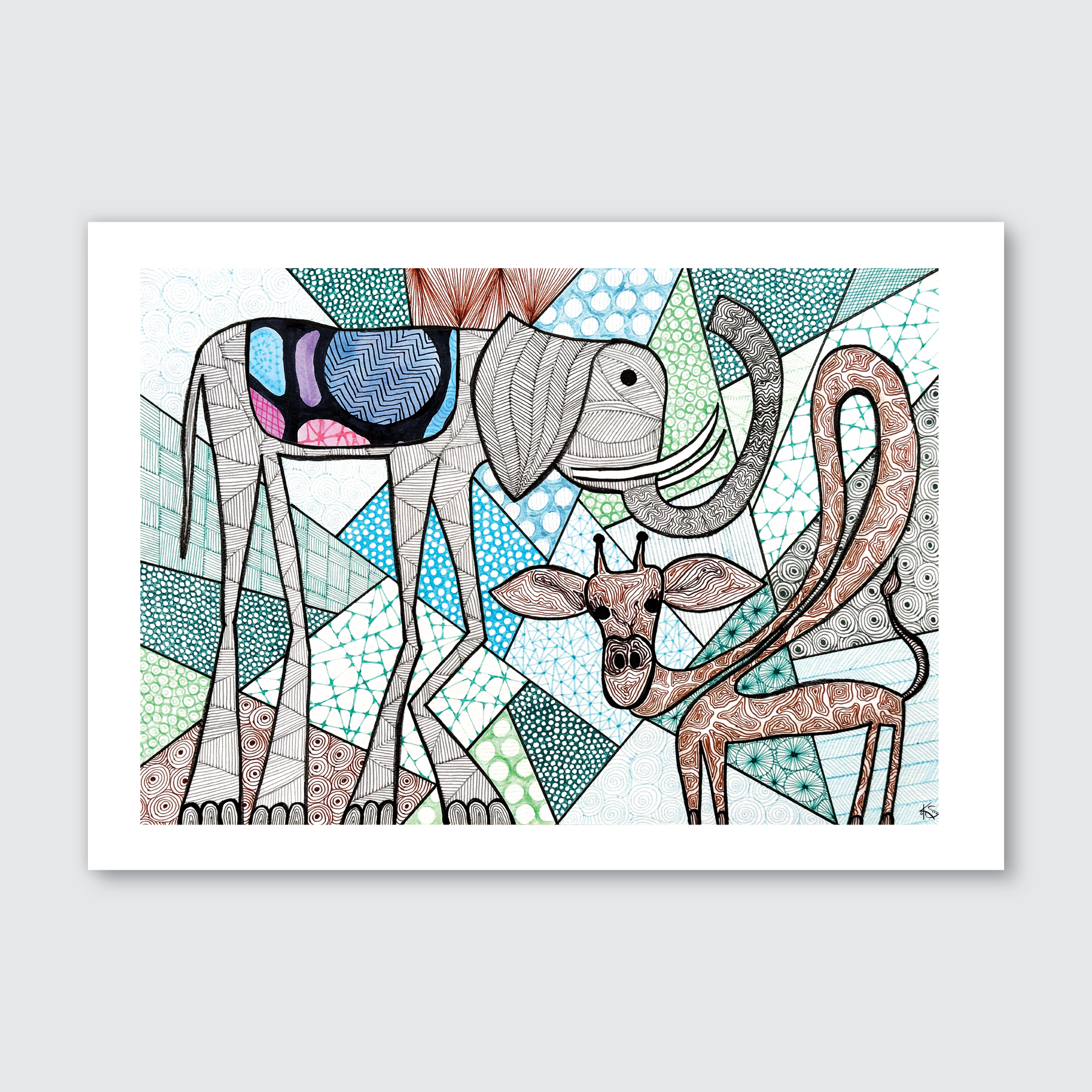 Lecks & Neg are different, but awesome, they support each other through thick and thin and have their own superpowers. Created in Katie’s unique and intricate style, using Fineline and alcohol markers along with splashes of ink, watercolour or acrylic, this piece comes from her Kids Series, a playful, colourful style of art infused with fun. Made in NZ with love.