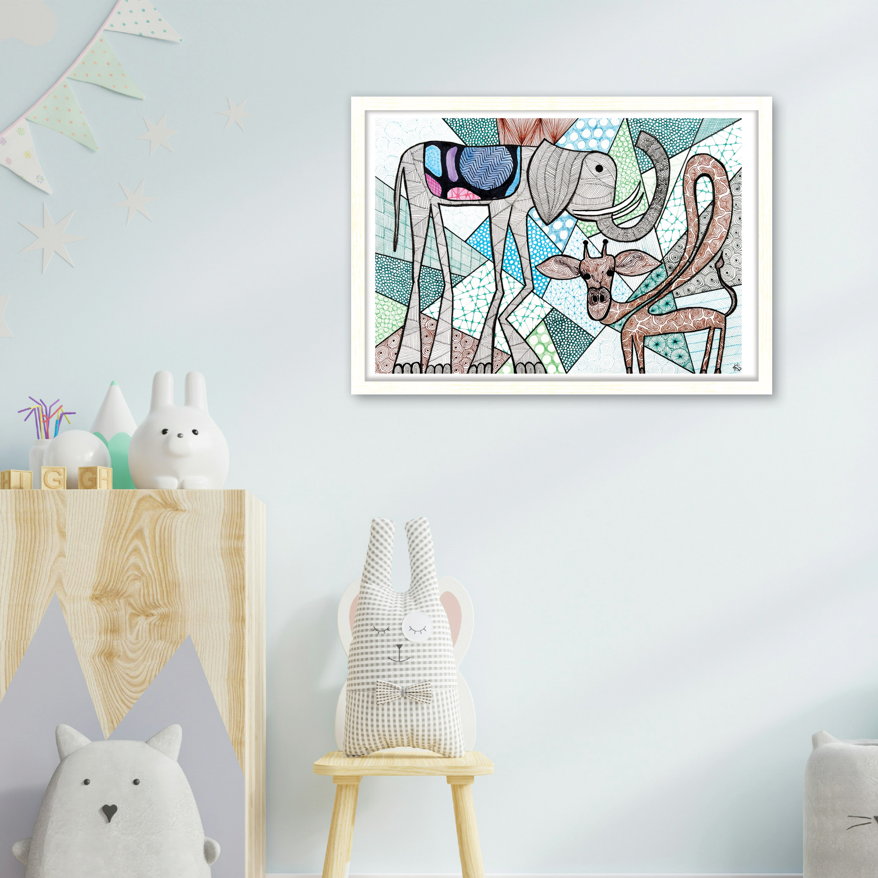 Your new framed art arrives sealed with acid-free tape on the back for dust protection & humidity control. All framed artwork includes hanging hardware ready to hang in any space.