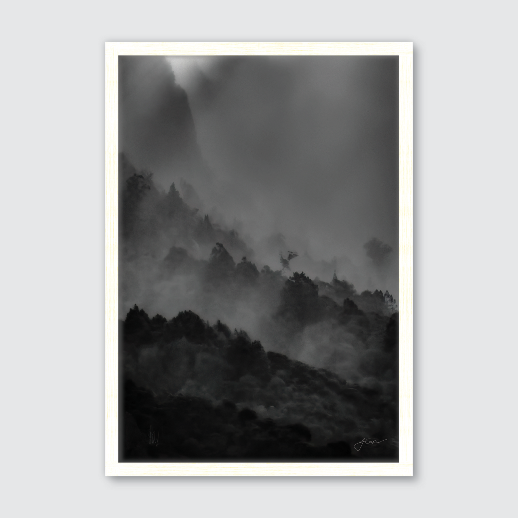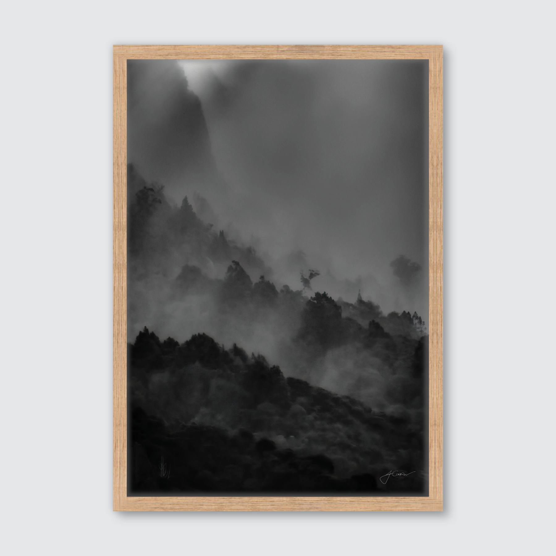 Our standard framing option is a premium moulded boxed frame, handcrafted locally in New Zealand. It features 20mm mouldings and a depth of 30mm, and is available in Natural Oak, Black, or White. Each framed print is backed with MDF and includes hanging fittings. We carefully wrap each framed print in bubble wrap and place it in a protective cardboard box for safe delivery.